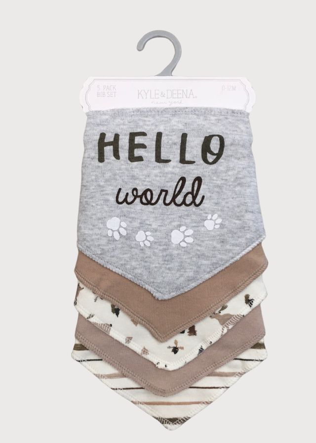 Juego de cinco baberos con toallita en la parte trasera para mayor absorción y ajuste de velcro