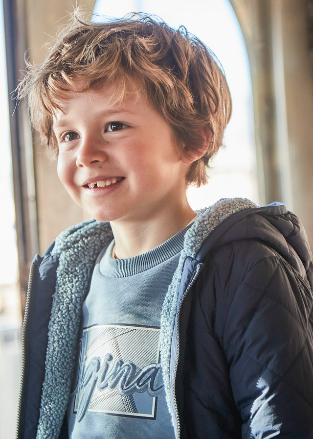 Esta chamarra acolchada de color azul marino reversible es ideal para mantener el calor en climas fríos. Con un diseño de capucha y un cierre de cremallera, ofrece comodidad y funcionalidad. Los detalles de costura en forma de rombo añaden un toque moderno, mientras que el otro lado de forro suave proporciona calidez adicional.