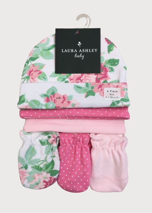 Juego de tres gorros y tres pares de manoplas para bebé de 0 a 3 meses