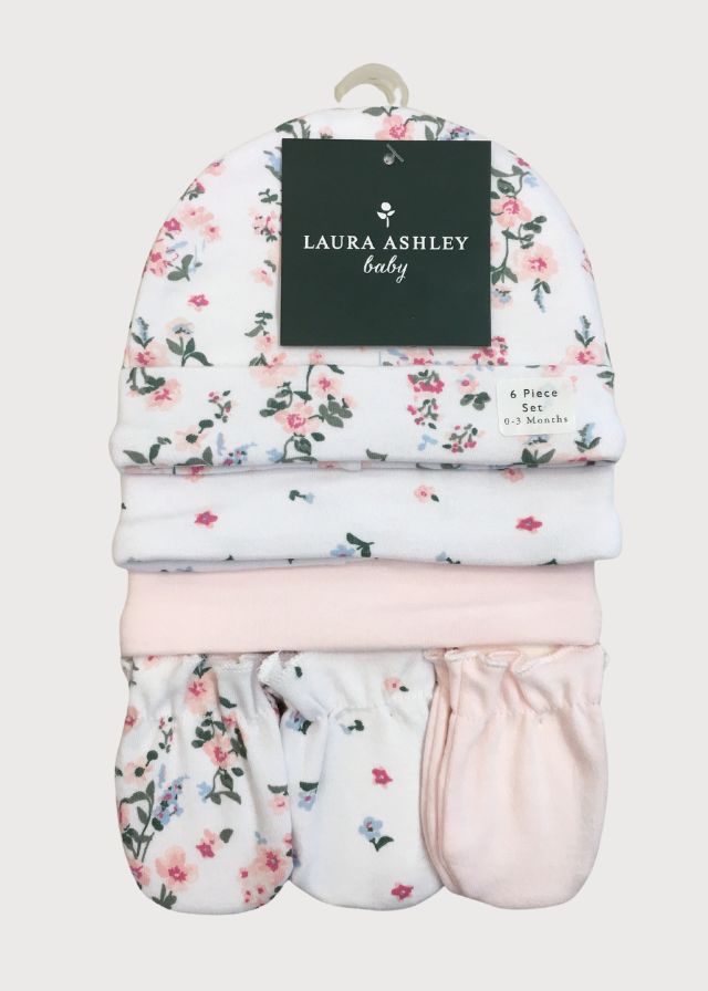Juego de tres gorros y tres pares de manoplas para bebé de 0 a 3 meses