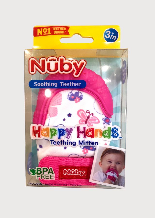 Está diseñado para bebés de 3 meses en adelante. Su función es ayudar a calmar las molestias de la dentición, ya que la parte superior tiene una superficie de silicona suave y texturizada para que el bebé la mastique y alivie el dolor de encías. Además, evita que el bebé se lastime al morderse las manos directamente.