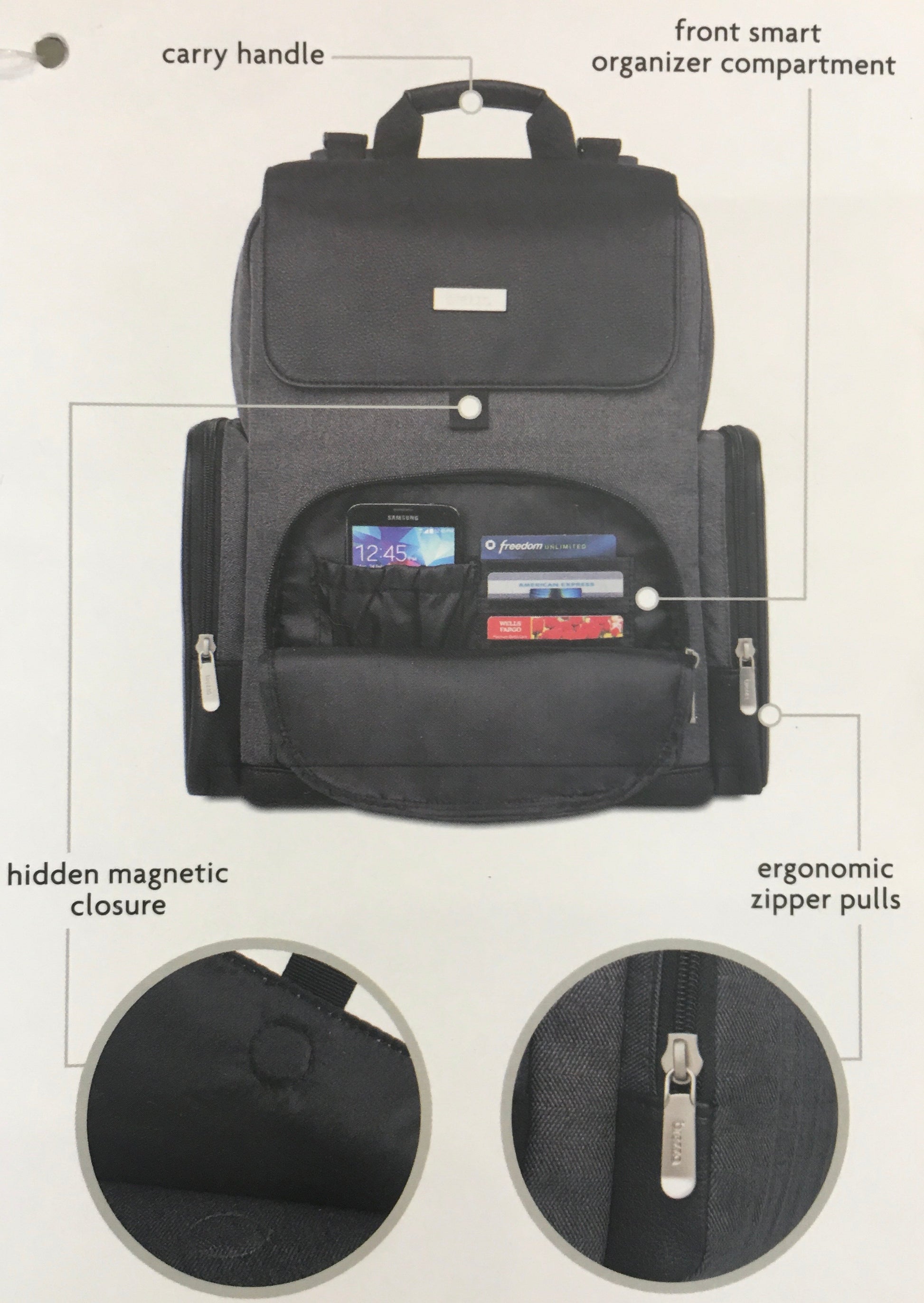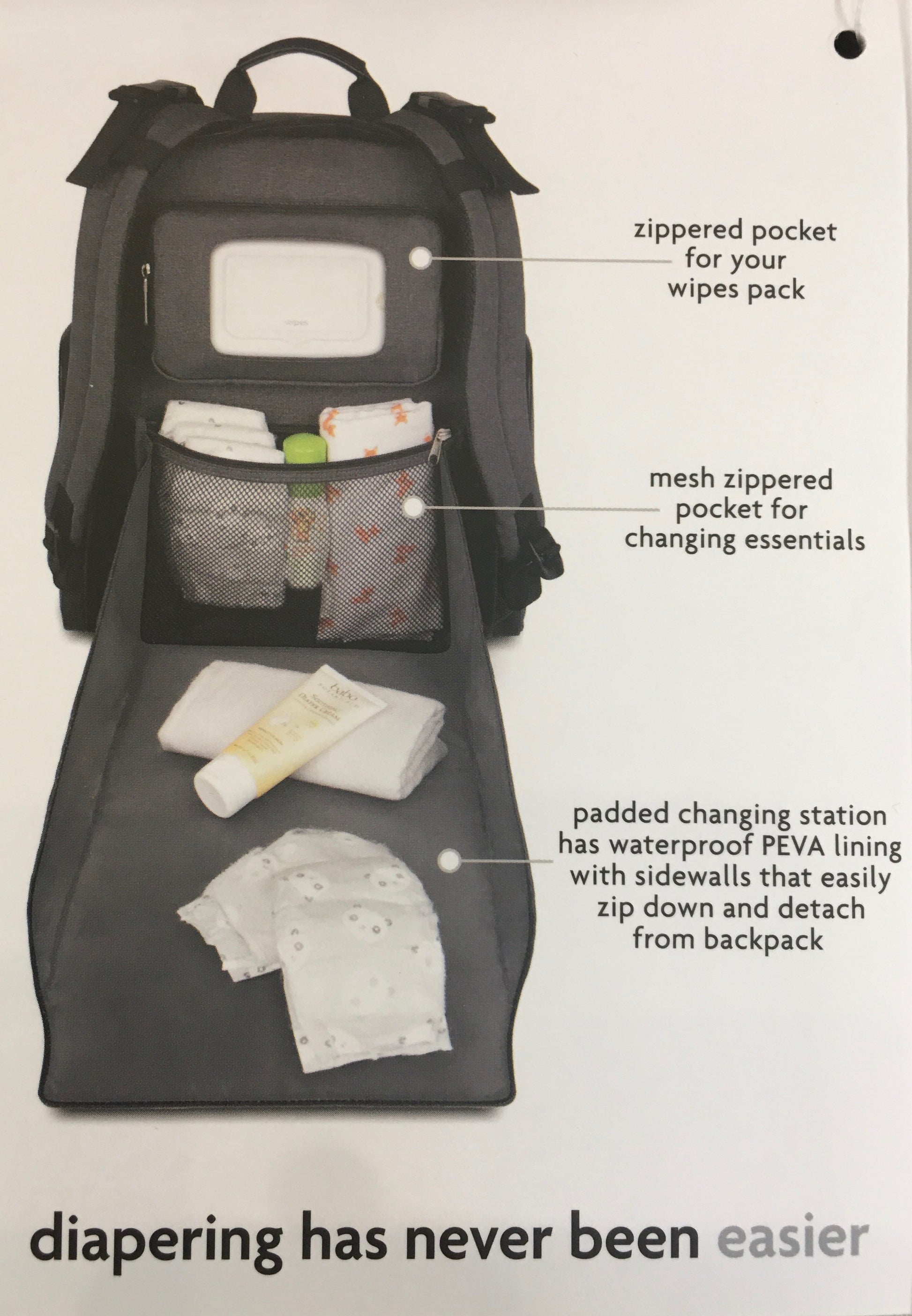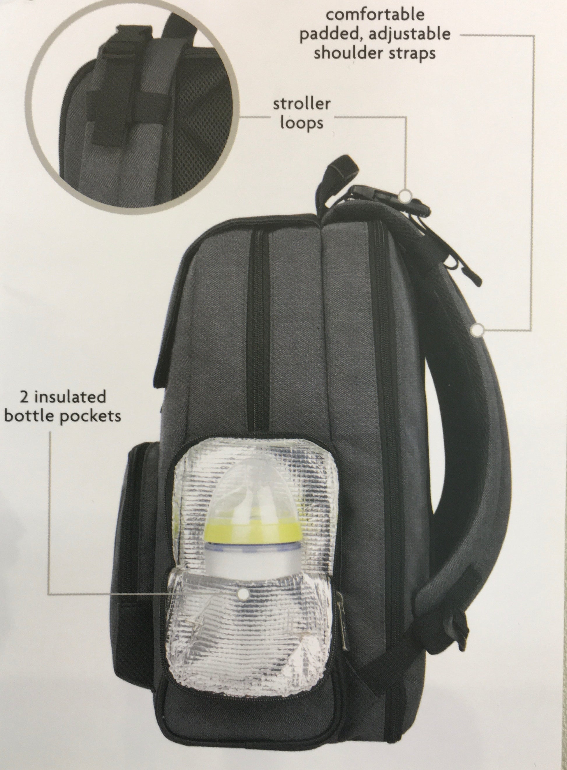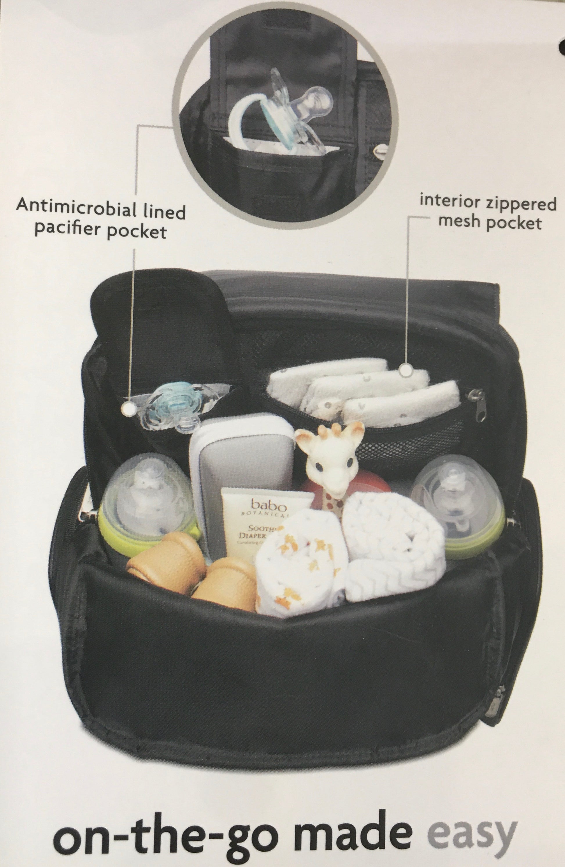 Contiene 9 compartimentos, bolsa para botellas con cordón, interior espacioso, cambiador limpiable, bolsillos para botellas aislados, lazos para el carrito.