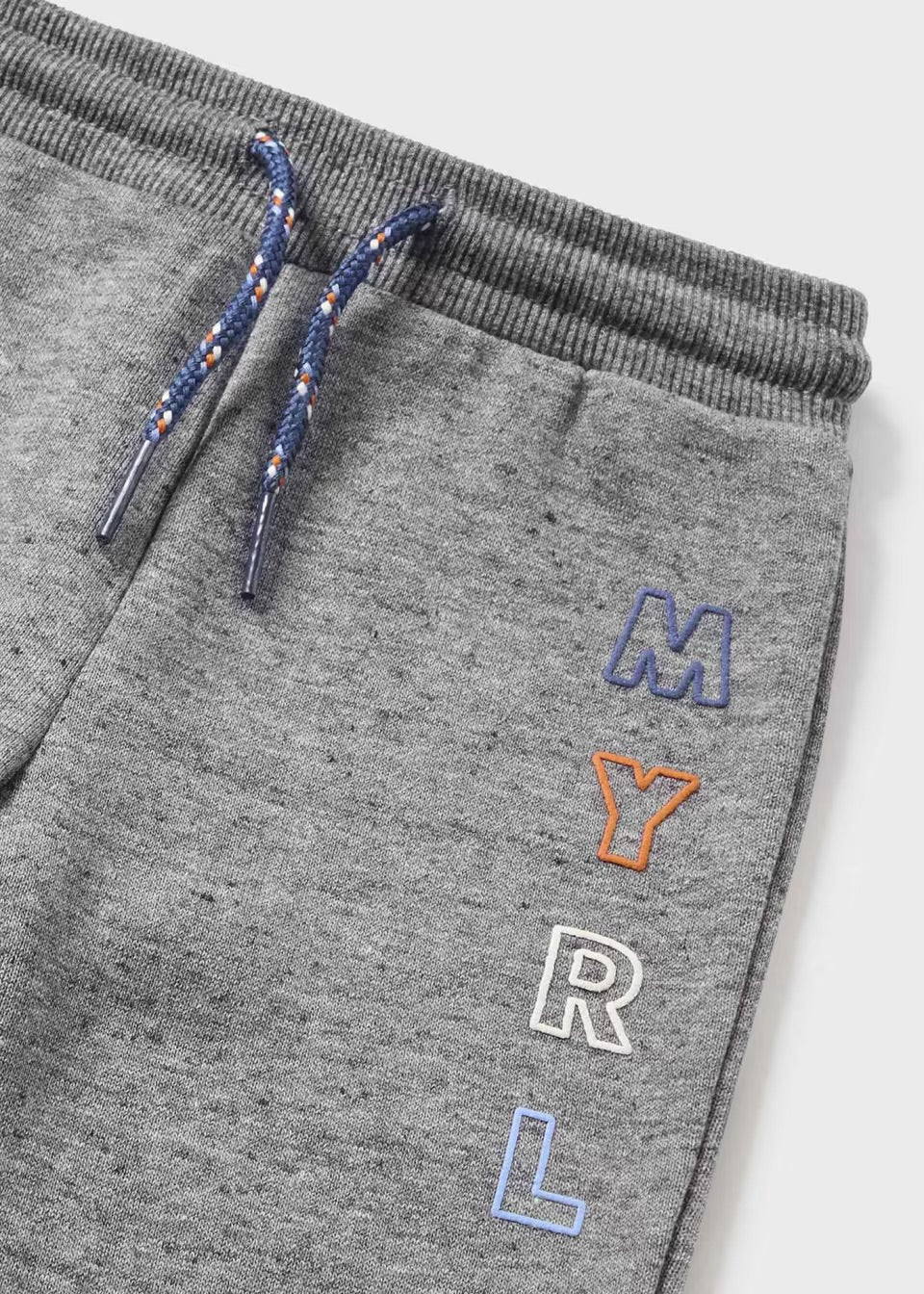 Esta es un pantalonera para niño que incluye una sudadera con capucha y dos pantalones. La sudadera es de color naranja con capucha azul, agregando un toque moderno. Los pantalones vienen en dos colores: gris y azul, ambos con cintura elástica y cordones ajustables para mayor comodidad.