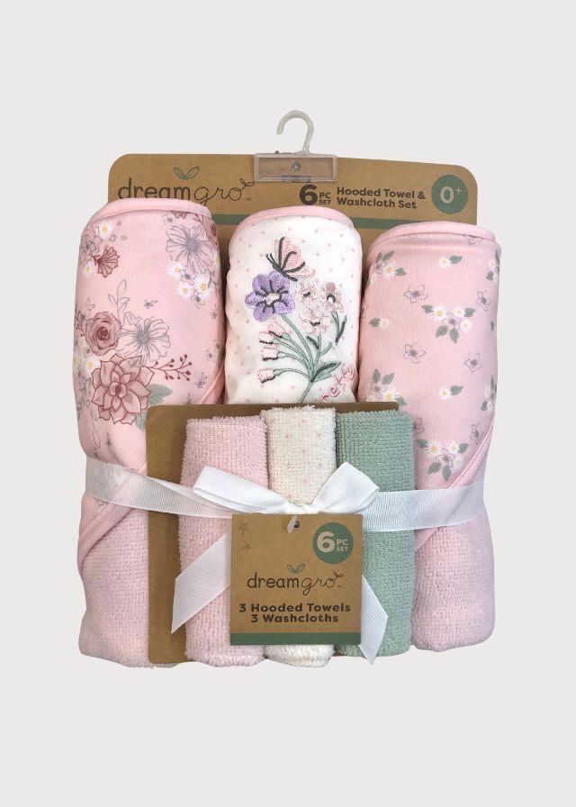 Juego de tres toallas de baño con capucha y tres toallitas faciales